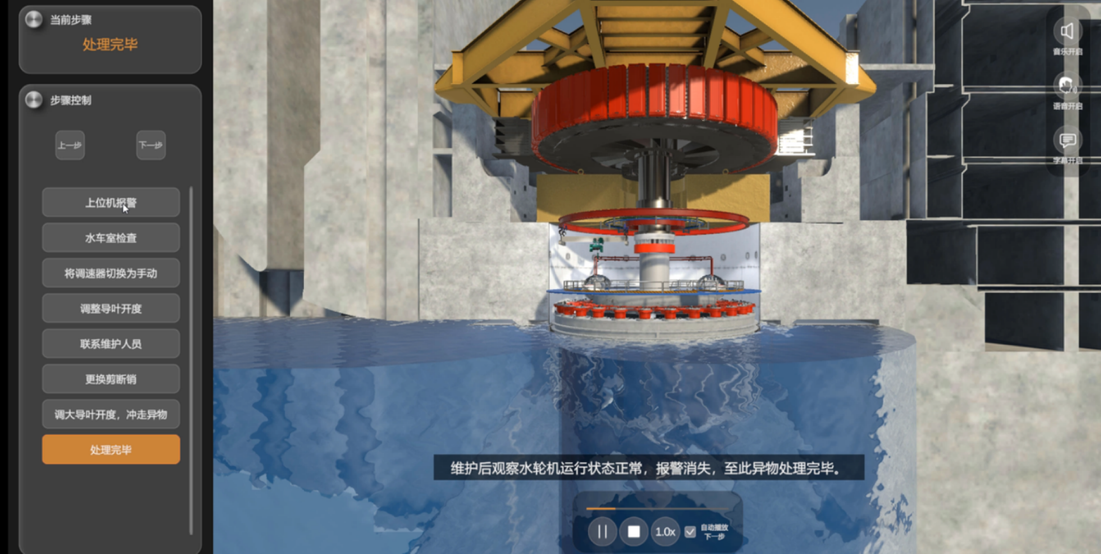 水电三维检修仿真系统通过文字、语音、动画、场景互动等多种方式为使用者讲