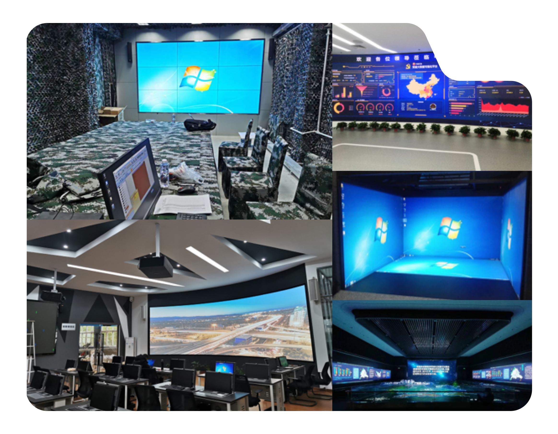 · 支持投影,液晶拼接屏、LED小间距等多种方式实现画面显示。